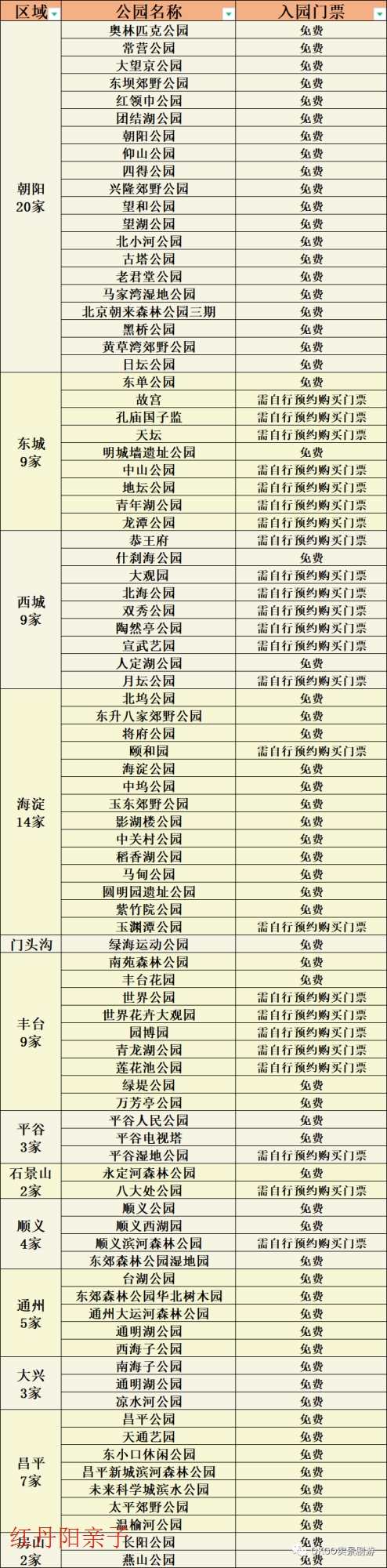 (如表内没有您想去的公园,加客服微信提前3天预约即可游玩)